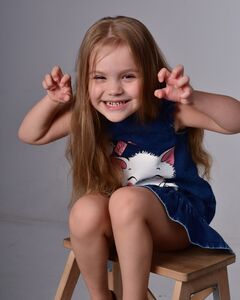 Глаза большие светло- карие, волосы длинные, светлые с рыжинкой. Раскрепощенная, ответственно подходит к работе, не по годам развита,не капризна,хорошая речь.Модель, фотомодель, актриса.Готовы к новым, интересным проектам.